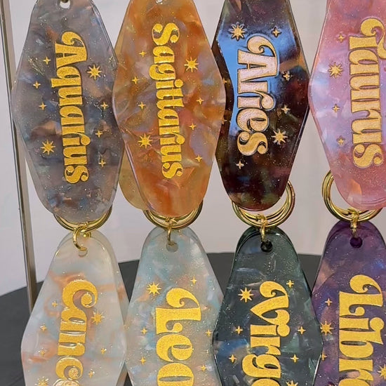 Perfect for gifting or treating yourself, these zodiac keychains make a statement on keys, purses, backpacks, tote bags, and more. Each piece is lightweight, glossy, and crafted to last—making it a must-have astrology accessory.